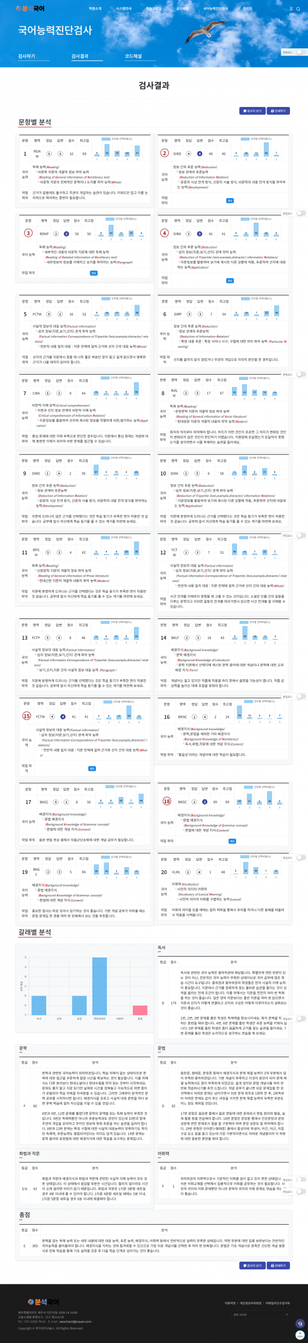 국어학원 홈페이지 및 국어능력 검사 시스템